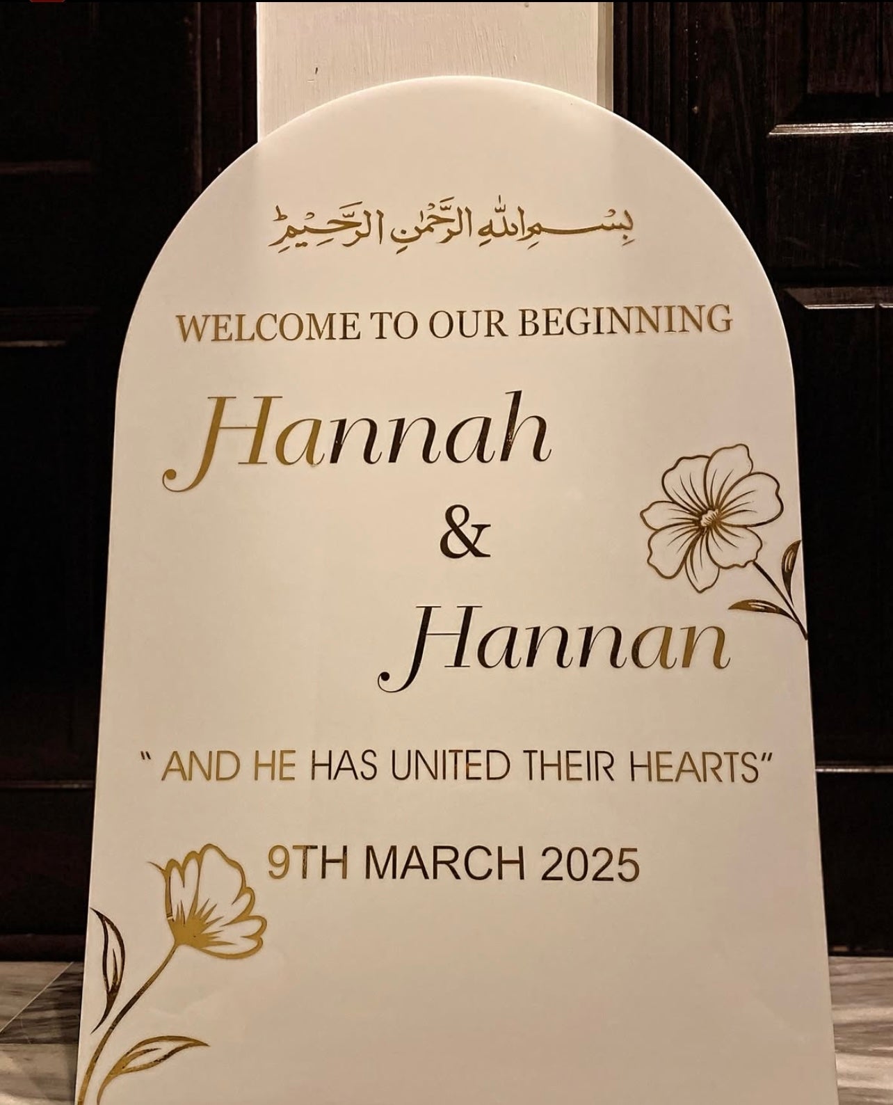 Arched Welcome Board – a modern, minimalist statement piece designed to elevate your event’s entrance.