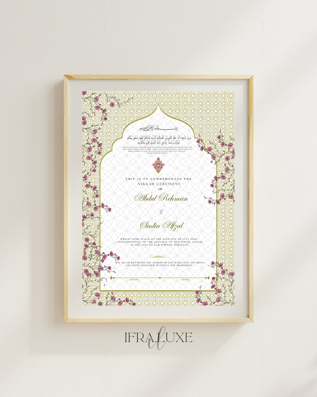 Gold Embellishment: Nikkahnama can also be hand-painted with gold leafing on the names and borders of the design. This luxurious touch is available at an additional cost.