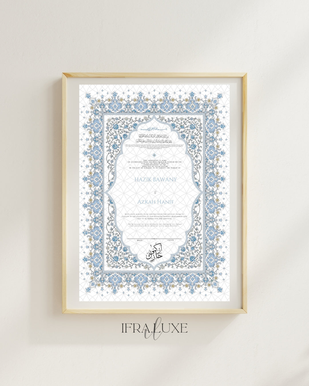 Gold Embellishment: Nikkahnama can also be hand-painted with gold leafing on the names and borders of the design. This luxurious touch is available at an additional cost.